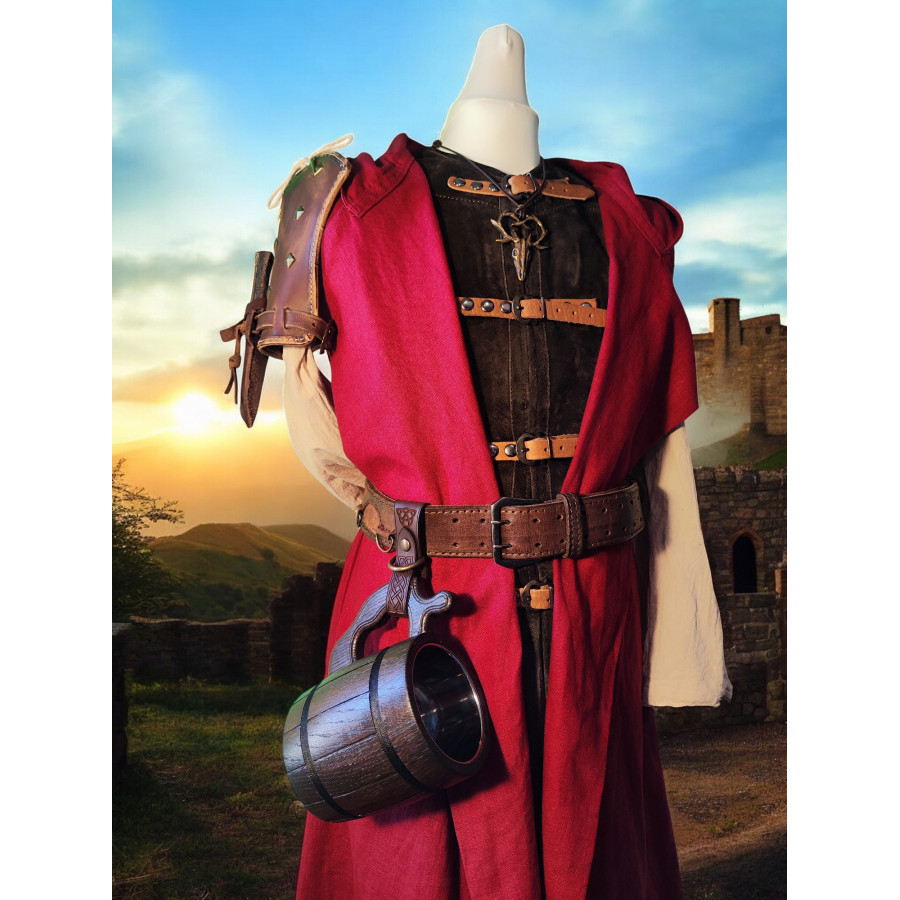 Ce porte-chope en cuir fait main est l'accessoire parfait pour vos reconstitutions historiques, vos jeux de rôle grandeur nature (GN) ou vos festivals médiévaux. Pratique et élégant, il vous permet de garder votre choppe toujours à portée de main tout en ajoutant une touche d'authenticité à votre tenue.